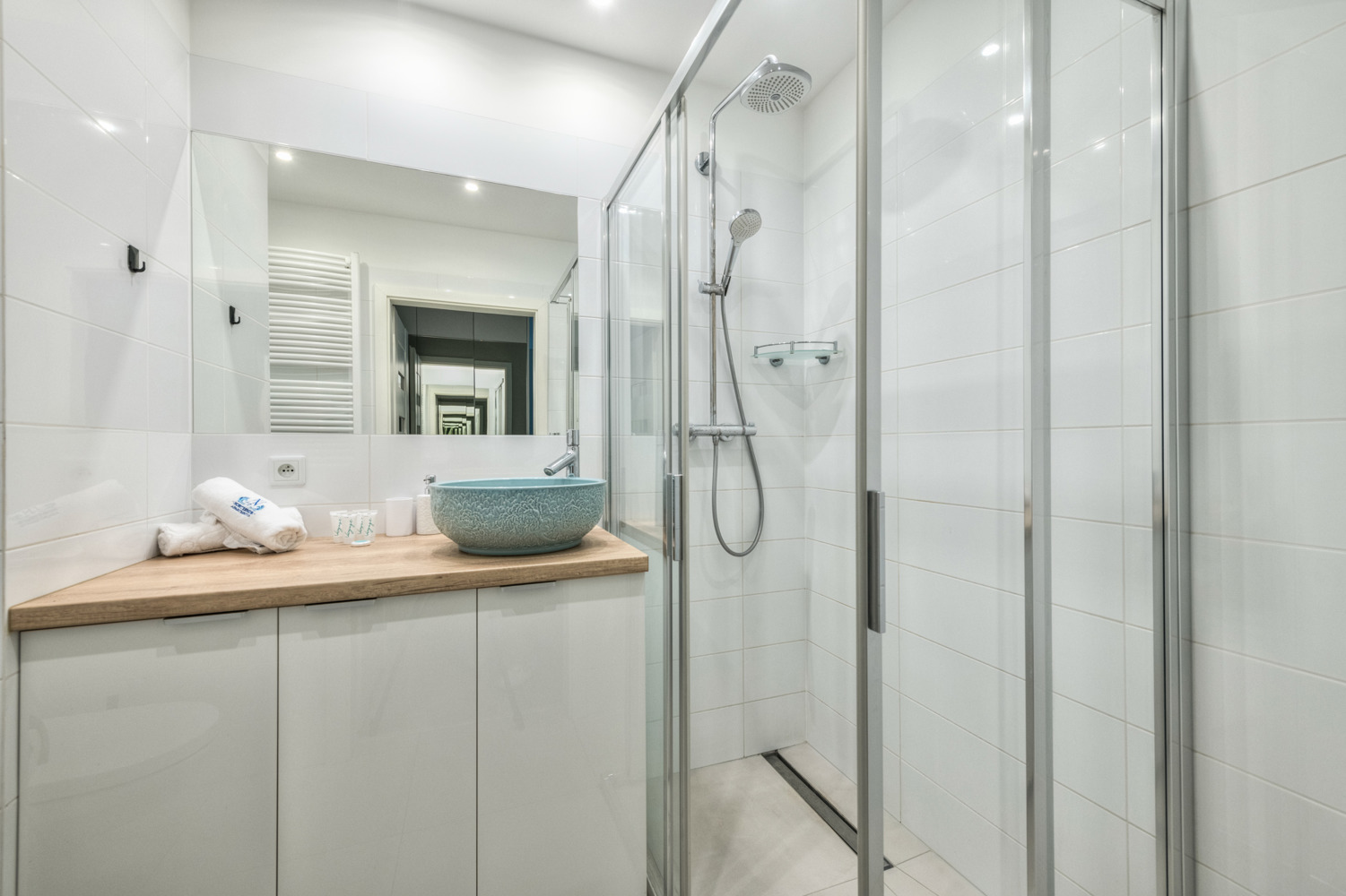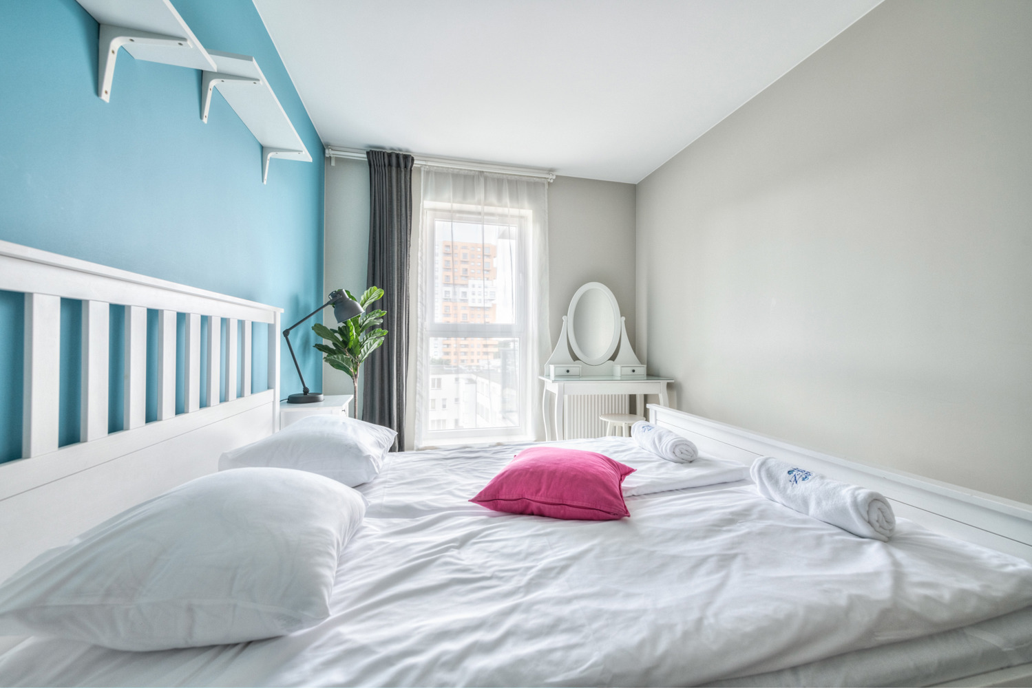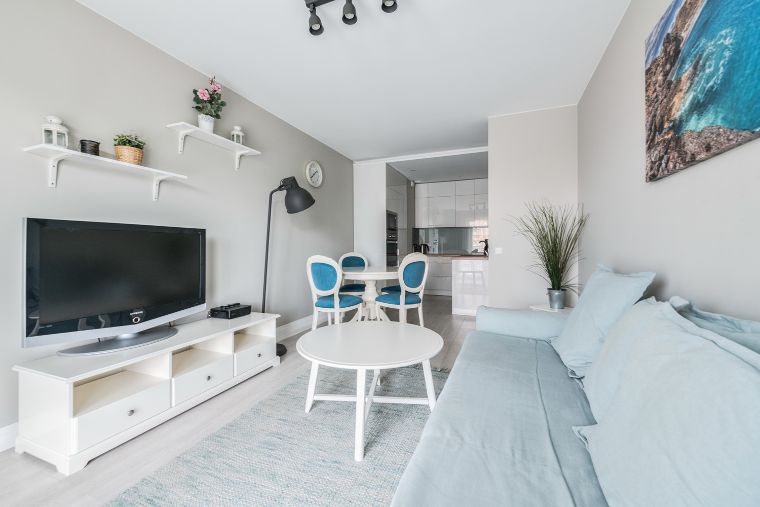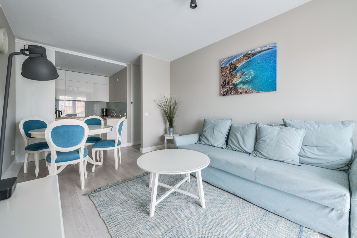 Cztery Oceany to stylowy apartament dla czterech osób, urządzony w jasnych barwach z morskim akcentem i przytulną atmosferą. Składa się z komfortowego salonu z częścią jadalnianą, oddzielnej sypialni oraz w pełni wyposażonej kuchni i nowoczesnej łazienki. Na przestronnym balkonie można zrelaksować się przy porannej kawie z widokiem na nowoczesne osiedle. W apartamencie zamontowano elektroniczną klamkę, która umożliwia szybkie i samodzielne zameldowanie. Budynek znajduje się w kompleksie Cztery Oceany w dzielnicy Przymorze – w pobliżu sklepy, restauracje i komunikacja miejska, a spacer na plażę zajmuje zaledwie kilkanaście minut. To doskonała baza wypadowa zarówno na wypoczynek, jak i miejskie aktywności.