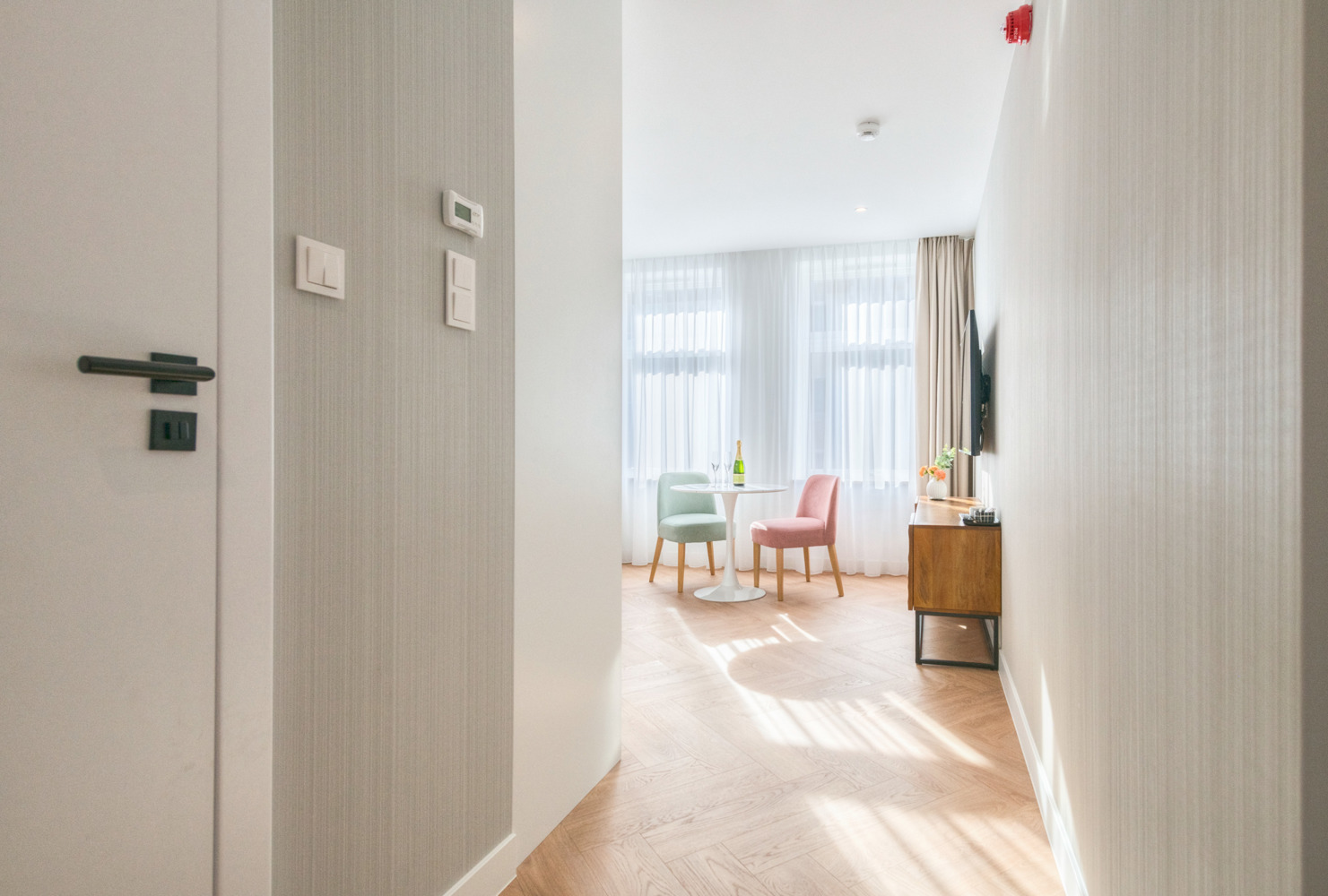 Apartament ma elektroniczną klamkę – zameldowanie odbywa się samodzielnie.