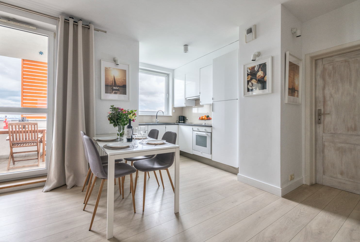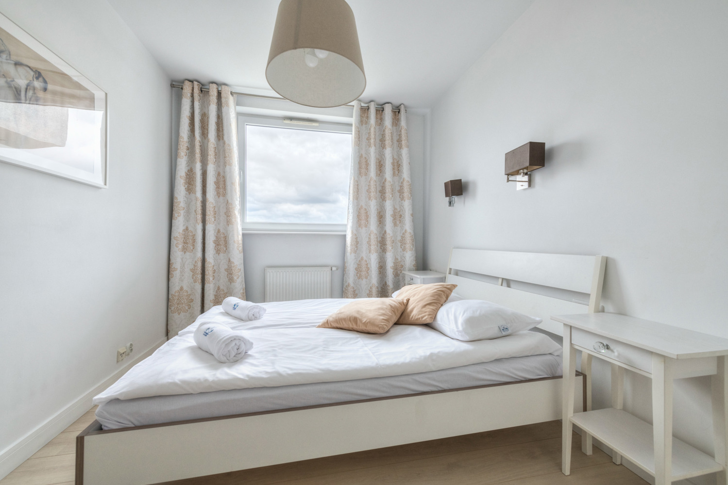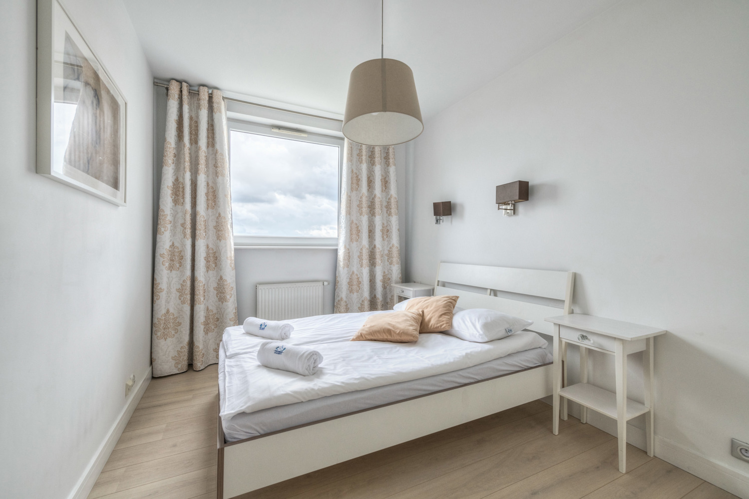 Apartament Trzy Żagle znajduje się na 13. piętrze nowoczesnego budynku i oferuje imponujący widok na panoramę Gdańska. Przestronny salon z dużą sofą, strefą jadalnianą i wyjściem na balkon tworzy przytulną przestrzeń do wypoczynku. Do dyspozycji gości jest także oddzielna, jasna sypialnia oraz w pełni wyposażona kuchnia i stylowa łazienka z prysznicem. W apartamencie komfortowo wypoczną cztery osoby. Elektroniczna klamka umożliwia samodzielne i bezproblemowe zameldowanie. Lokalizacja na Przymorzu zapewnia szybki dostęp do plaży, Parku Reagana i licznych punktów gastronomicznych.