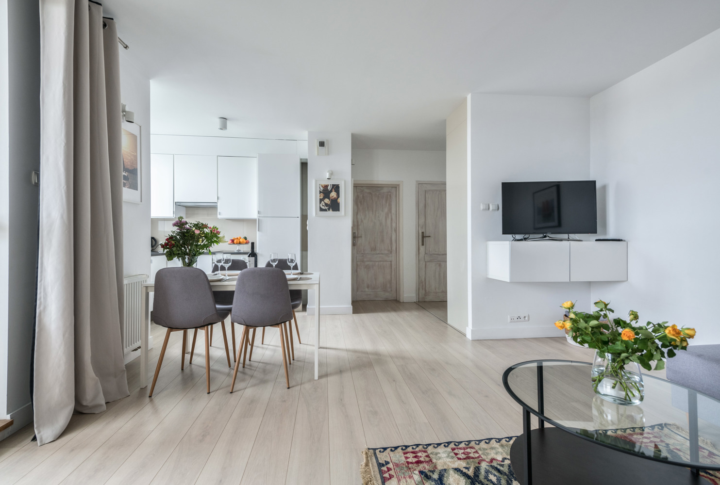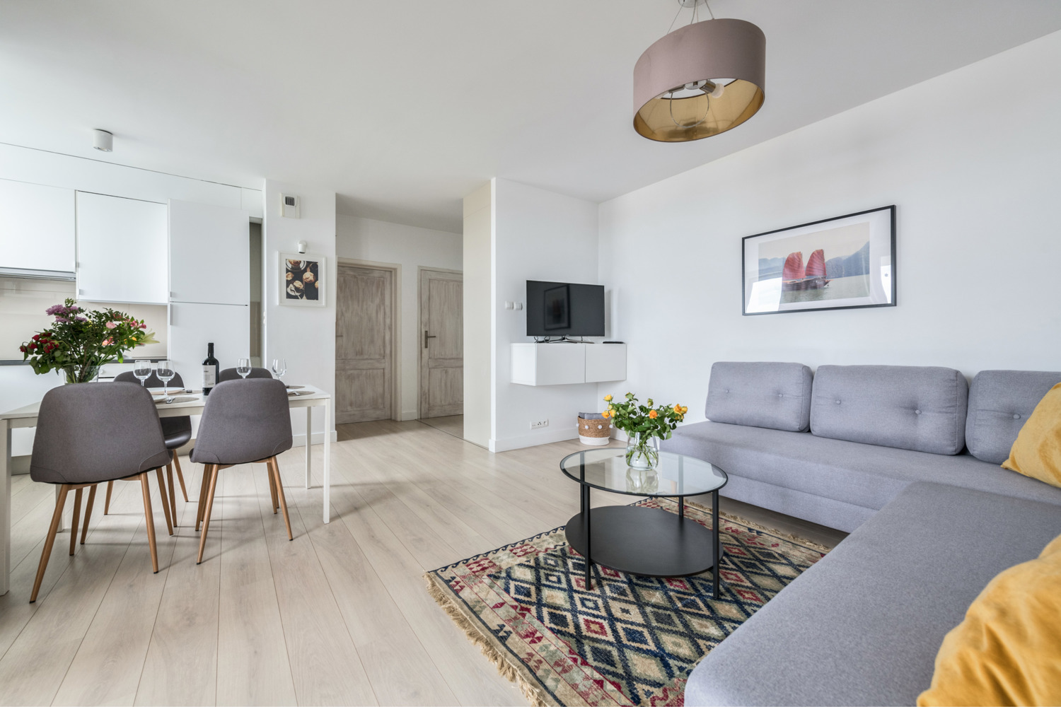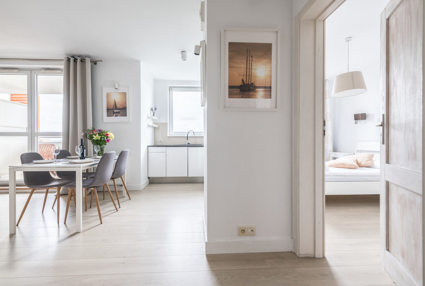 Apartament Trzy Żagle znajduje się na 13. piętrze nowoczesnego budynku i oferuje imponujący widok na panoramę Gdańska. Przestronny salon z dużą sofą, strefą jadalnianą i wyjściem na balkon tworzy przytulną przestrzeń do wypoczynku. Do dyspozycji gości jest także oddzielna, jasna sypialnia oraz w pełni wyposażona kuchnia i stylowa łazienka z prysznicem. W apartamencie komfortowo wypoczną cztery osoby. Elektroniczna klamka umożliwia samodzielne i bezproblemowe zameldowanie. Lokalizacja na Przymorzu zapewnia szybki dostęp do plaży, Parku Reagana i licznych punktów gastronomicznych.