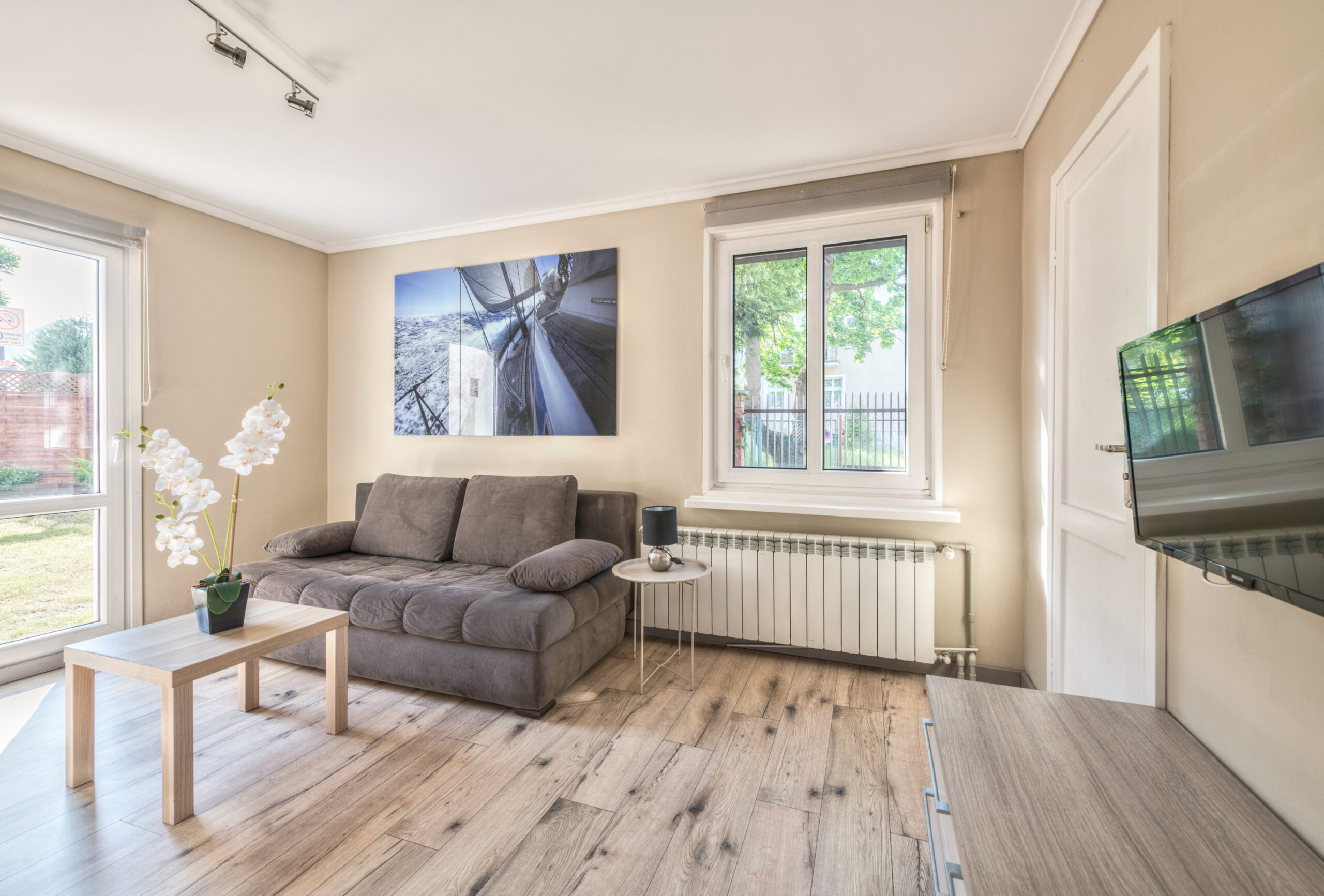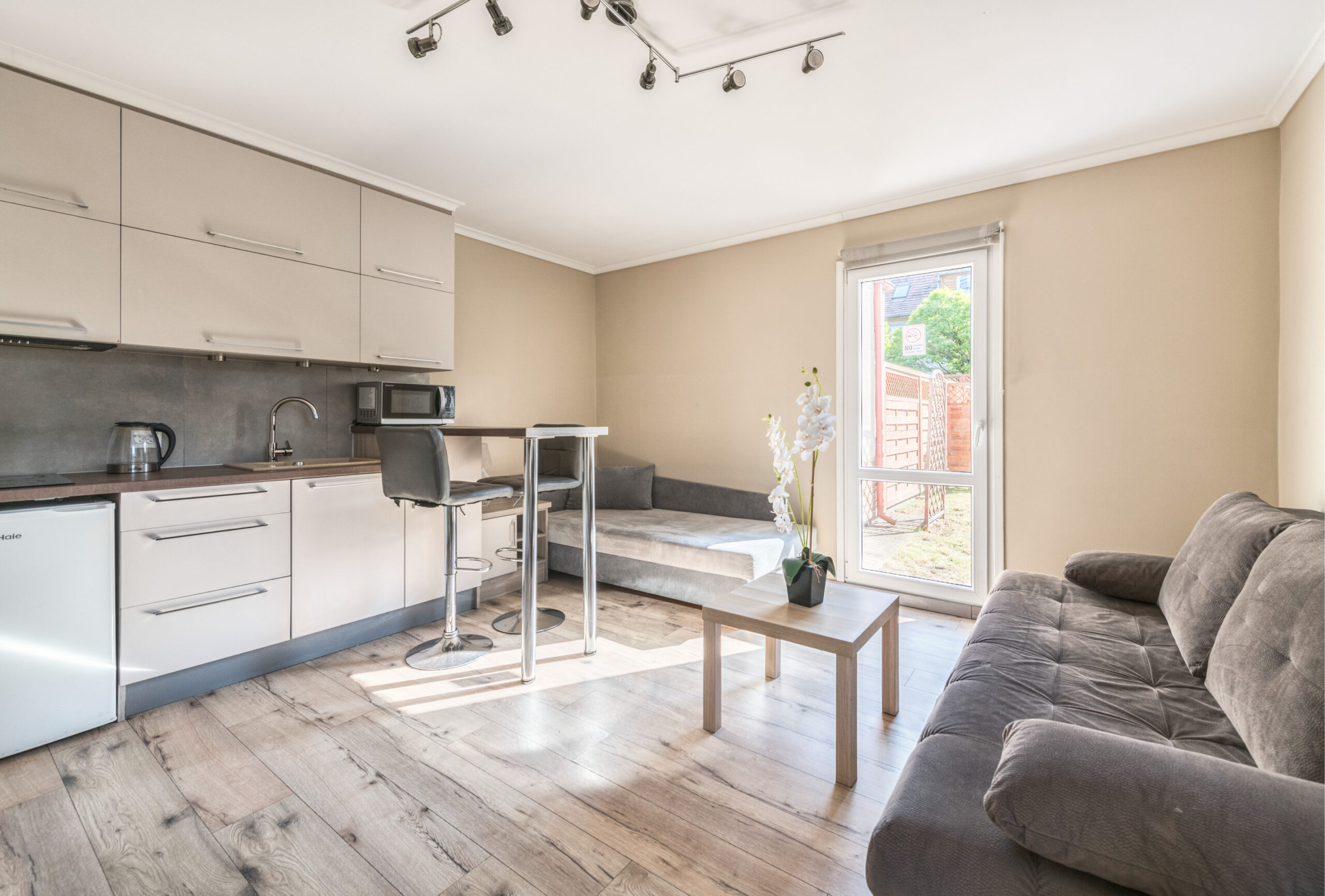 Mieszkanie typu Studio z ogrodem o powierzchni ok 50 m2, zlokalizowane w dolnym Sopocie, przy ul. Bitwy Pod Płowcami. Apartament mieści się na parterze w jednorodzinnej willi, podzielonej na apartamenty i jest całkowicie niezależny. Opłaty eksploatacyjne stałe 600 zł (woda, ogrzewanie, śmieci, telewizja i internet), plus prąd wg. licznika. Razem około 700 zł / msc. Wynajem możliwy do sezonu letniego 2026 roku.