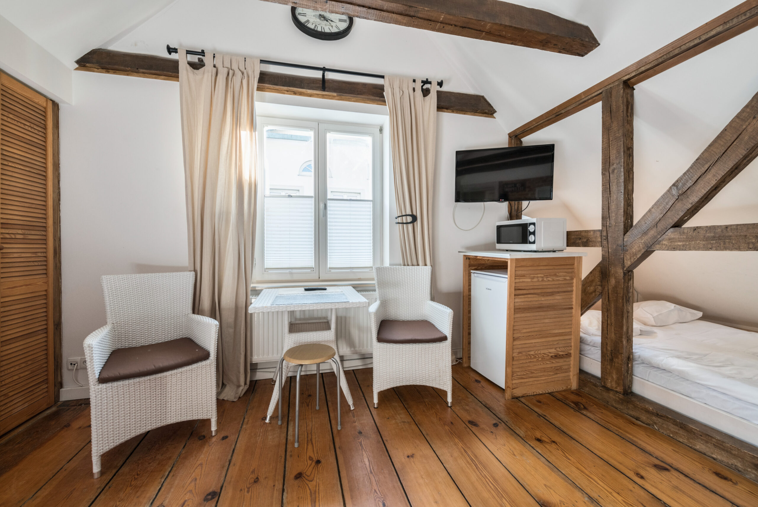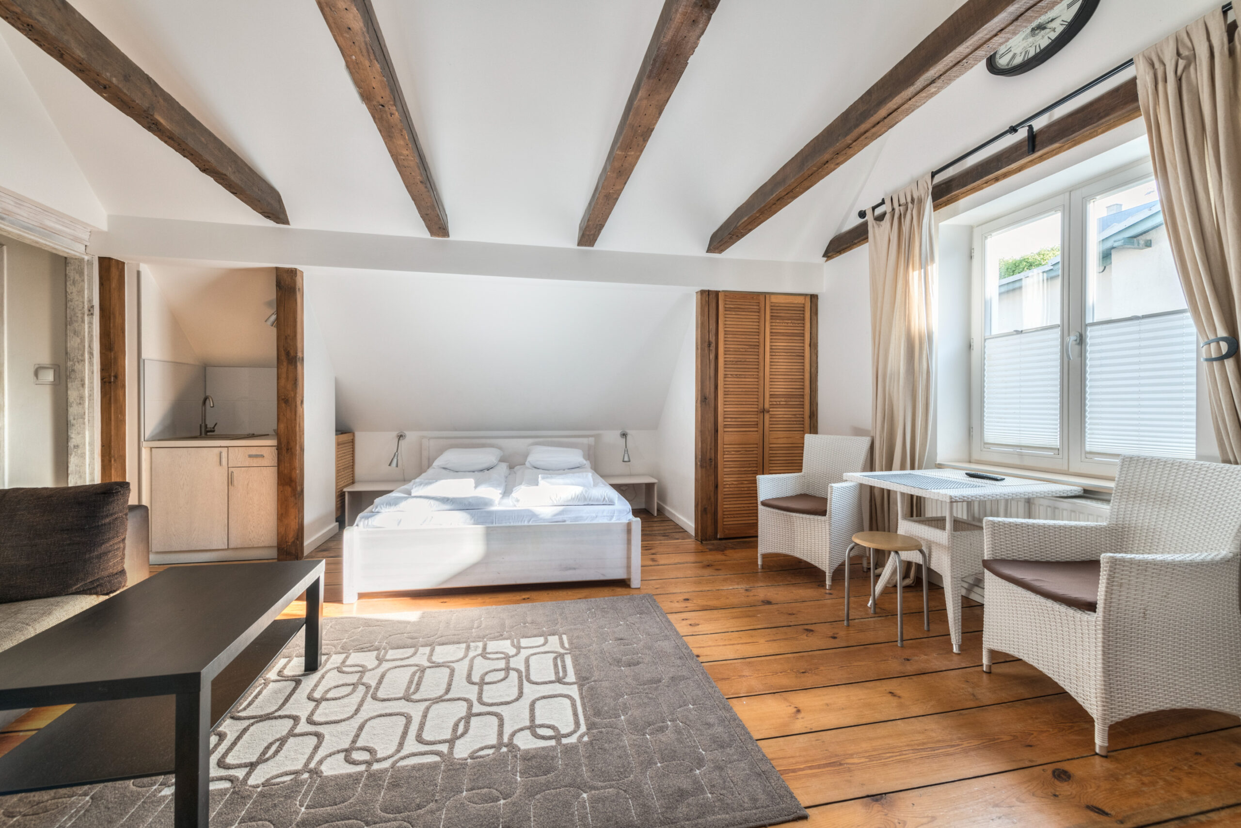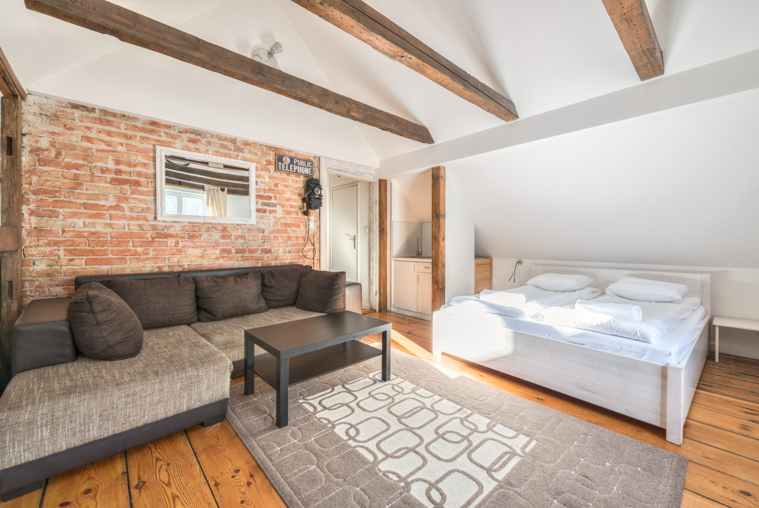 – studio z 3 dużymi łóżkami i częścią wypoczynkową