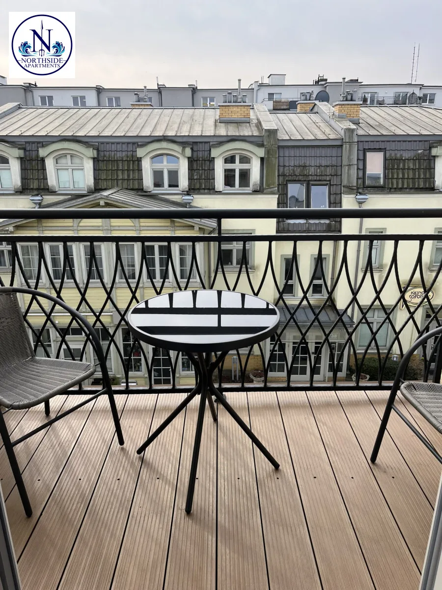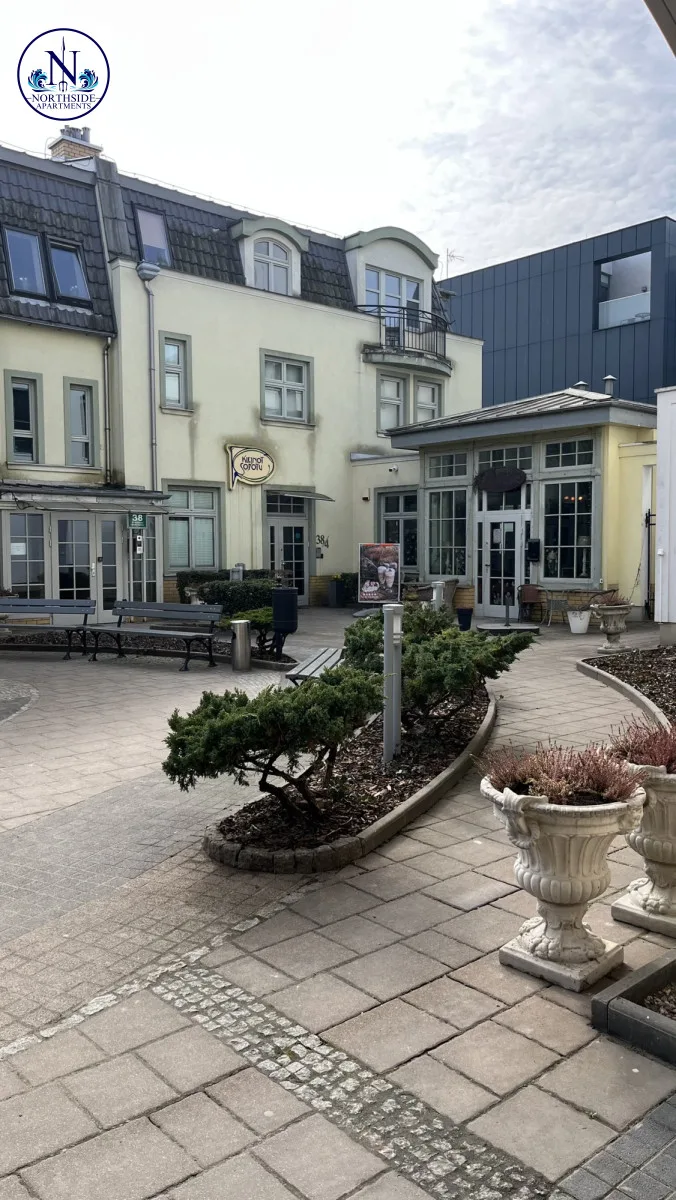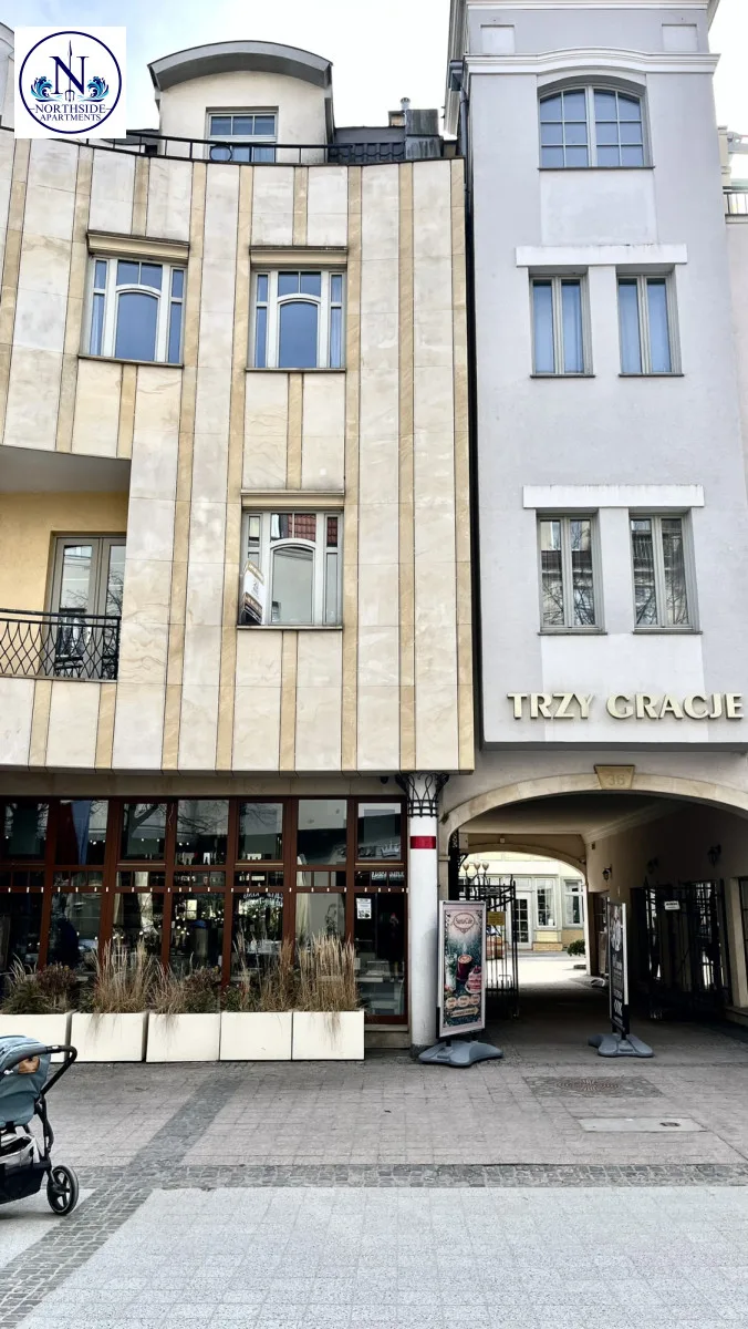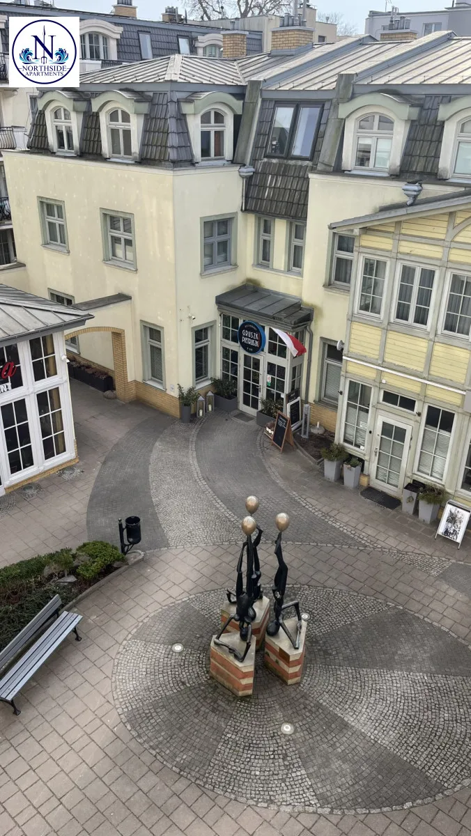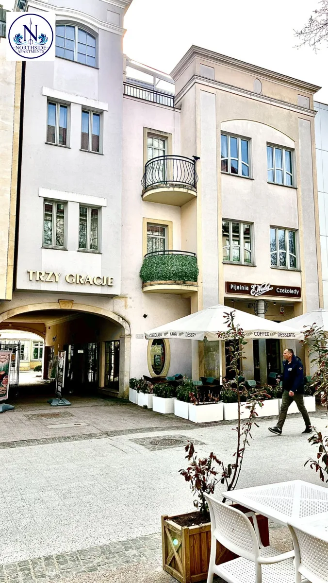 Budynek 3 Gracje, obok „Krzywego Domku” w odległości 300 metrów od Mola oraz plaży, a także w niewielkiej odległości od kortów tenisowych i ścieżek rowerowych.Okna wychodzą na Patio, dzięki czemu jest bardzo ciche i komfortowe