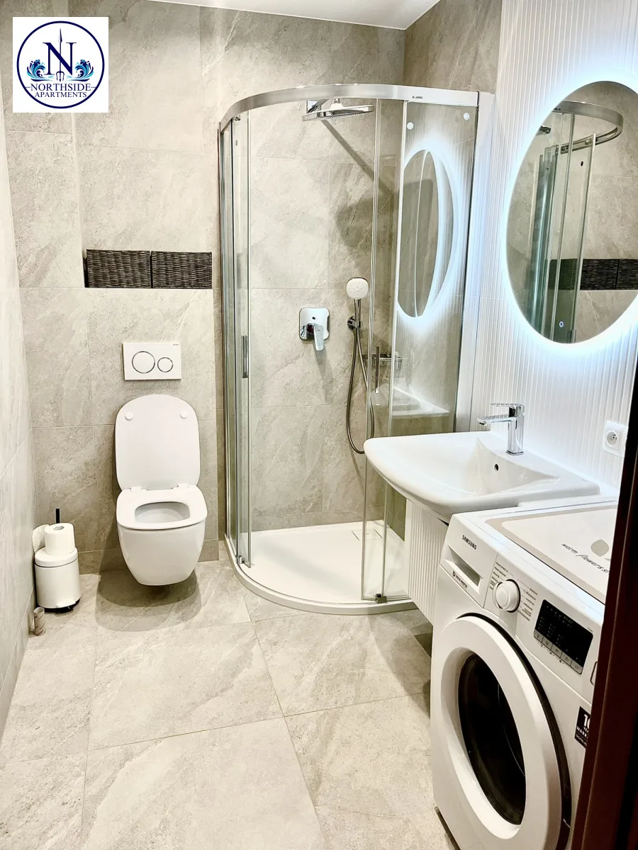– Łazienka z prysznicem i pralką